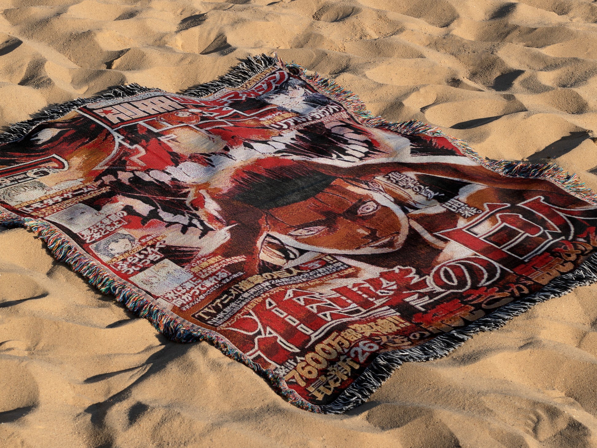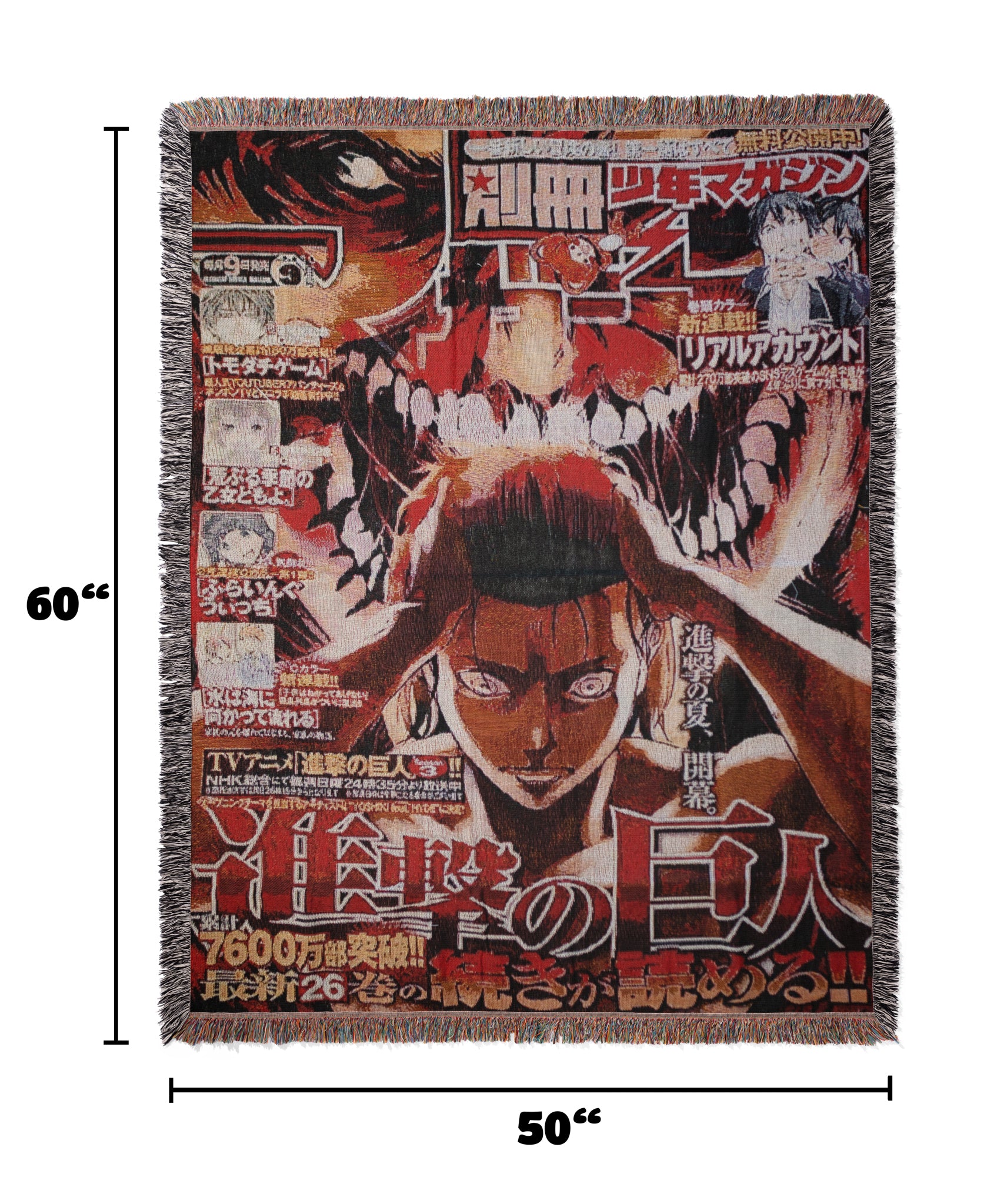 Crafted with premium, durable woven fabric and rich fringe detailing, this throw blanket doubles as both a cozy companion and striking decor piece. Perfect for hanging on your wall, tossing on your bed, or wrapping yourself during a late-night anime binge, this piece is as versatile as it is bold.