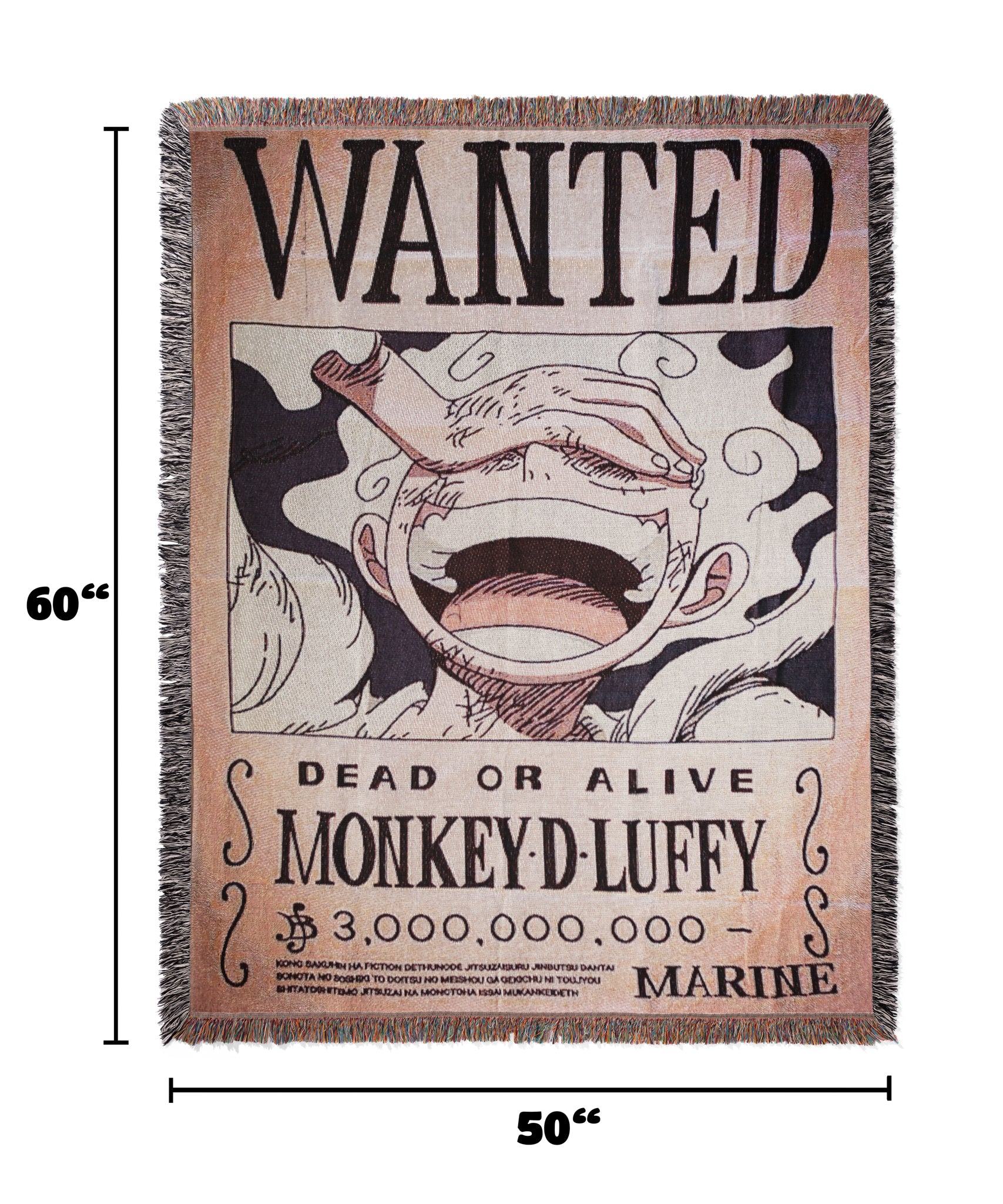 Luffy Gear 5 Wanted Poster Woven Tapestry – One Piece Wall Art Throw Blanket (60"x50")